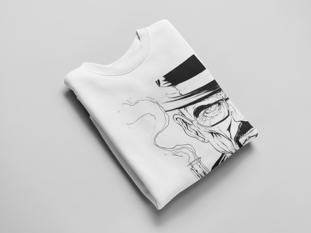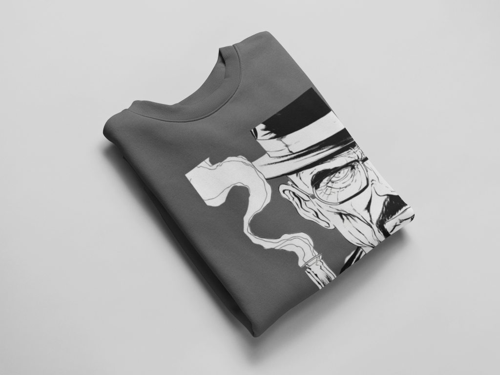The design features a high-definition DTF (Direct to Film) print of Walter White in his hazmat suit, set against a dramatic lab background. The print is sharp, vibrant, and built to last — just like Heisenberg’s empire.