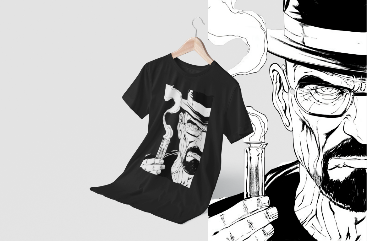 Whether you're a chemistry nerd, a Breaking Bad addict, or just love strong character-driven designs — this tee is your lab coat in disguise.