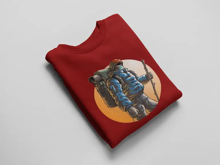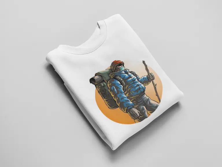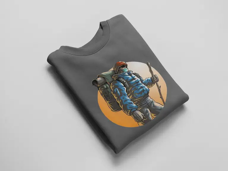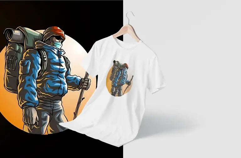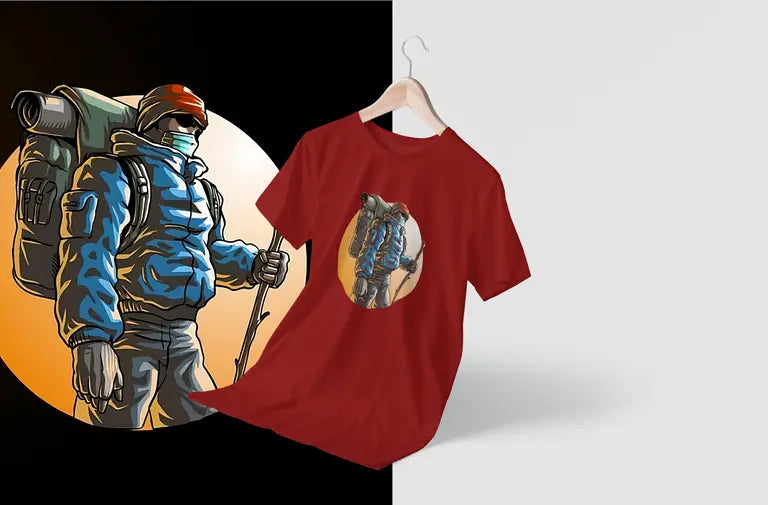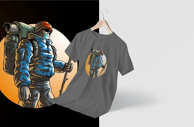 DTF print of a hiker mid-journey – bold, detailed, and crack-resistant