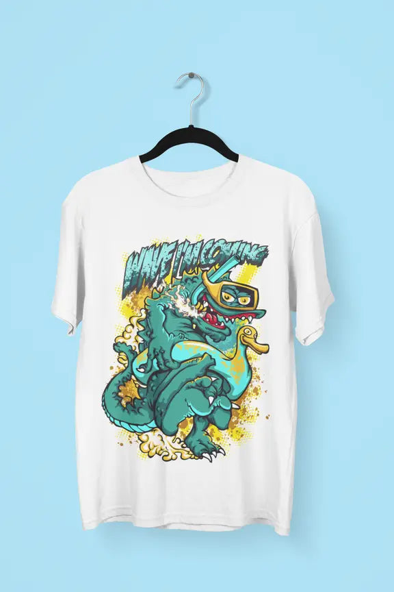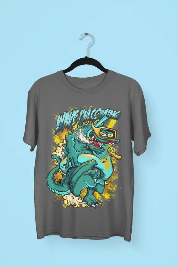 Dive into bold style with the "Wave Warrior" T-shirt – where pop art meets mythical imagination. This eye-catching tee showcases a vibrant DTF-printed crocodile-dragon hybrid standing strong in the ocean, poised to take on crashing waves. It’s not just a T-shirt – it’s an attitude.