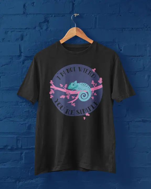 🦎 I’m Not Weird, You’re Simple – Bio-Wash Cotton T-Shirt | Chameleon Art | DTF Print | Unisex Fit