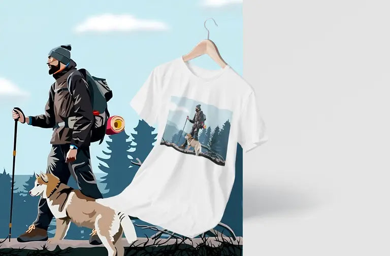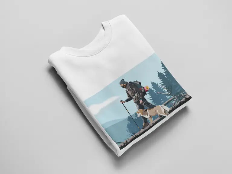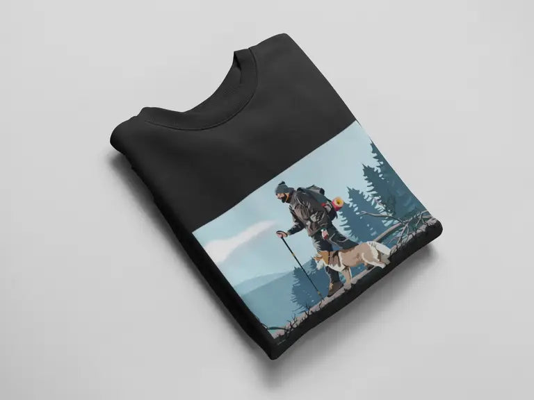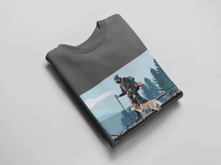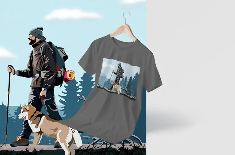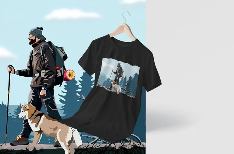 Featuring a high-quality DTF (Direct-to-Film) print of an adventurous man hiking alongside his loyal pet dog, this design celebrates the spirit of exploration, freedom, and companionship. The vibrant, detailed artwork is printed using durable, crack-resistant DTF technology that stays bold—no matter where your journey takes you.
