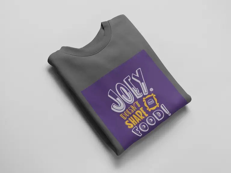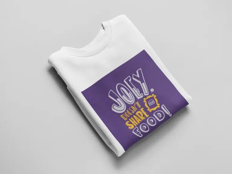 Calling all food lovers and Friends fanatics — this tee is for you! Featuring a bold illustrated design of Joey Tribbiani and his most unforgettable rule — “Joey doesn’t share food!” — this bio-wash cotton T-shirt combines comedy, comfort, and iconic 90s nostalgia in one irresistible package.