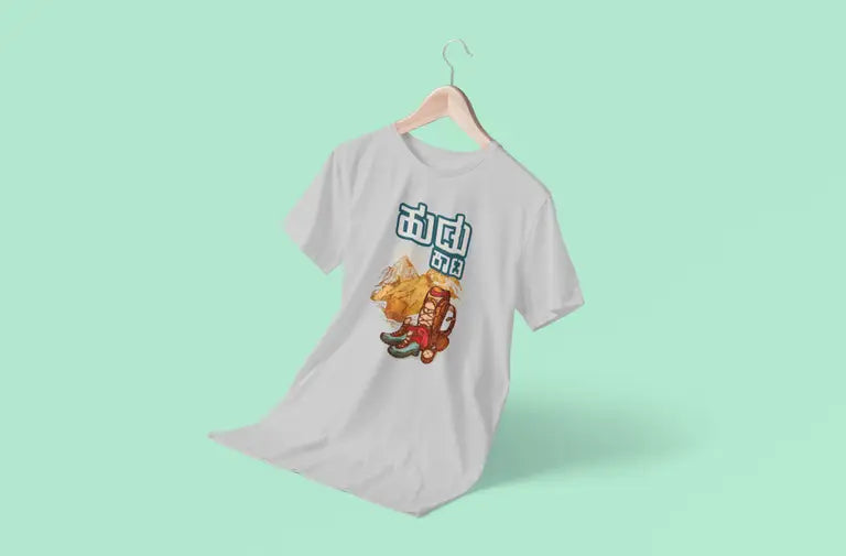 This exclusive Kannada-themed T-shirt is designed for those who carry a backpack full of dreams and wear their hiking boots with pride. Featuring the bold Kannada word "ಹುಡುಗಾಟ" (meaning exploration/adventure), this T-shirt celebrates your connection with nature and the call of the unknown.