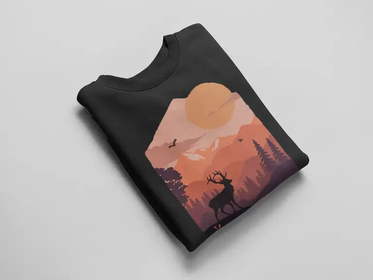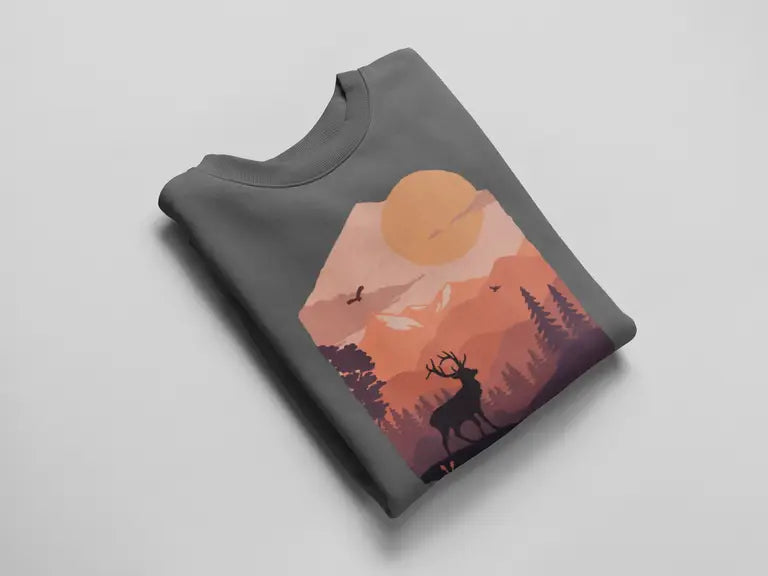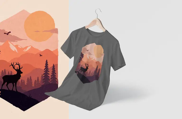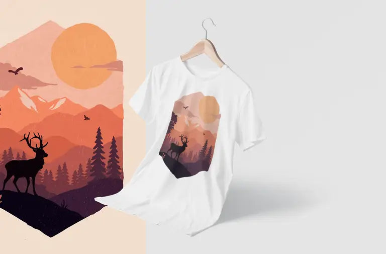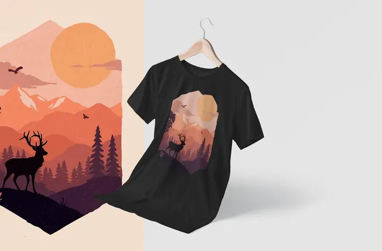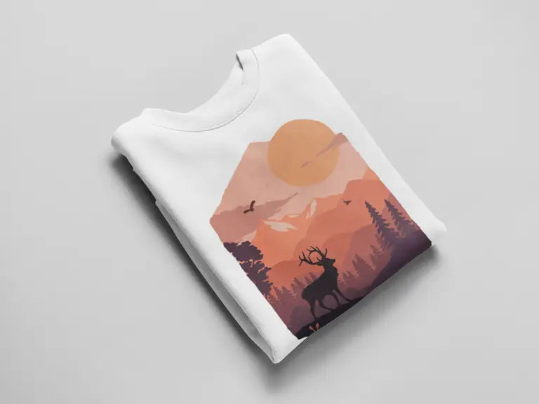 DTF printed sunset + deer artwork – detailed, fade-resistant, and crack-proof