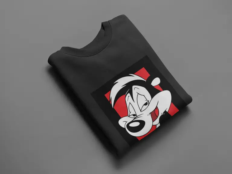 The star of the show? A high-definition DTF (Direct-to-Film) printed image of Pepé Le Pew, mid-pursuit with his signature suave smile and amorous flair. It’s a cheeky tribute to classic cartoon mischief and timeless flirtatious fun.