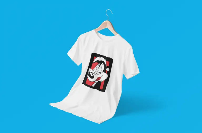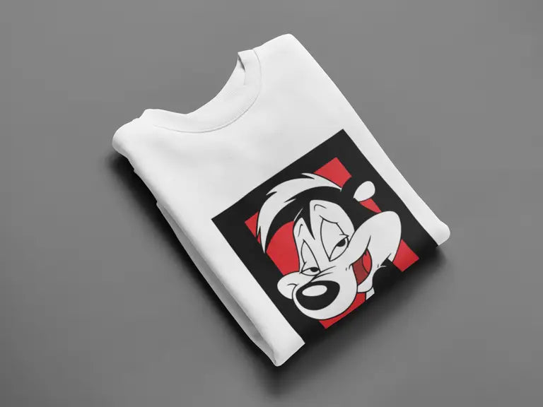 💘 Bring a dash of romance and old-school charm to your wardrobe with this Pepé Le Pew T-Shirt, celebrating one of the most iconic characters from the golden age of 90s cartoons – Looney Tunes’ own hopeless romantic skunk!