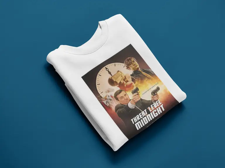 Step into the chaotic brilliance of Dunder Mifflin’s wildest screenplay with our Threat Level Midnight T-shirt, featuring Michael Scott and Jim in all their undercover glory. Whether you're a die-hard fan of The Office or just love bold, character-driven prints, this shirt is made to stand out.
