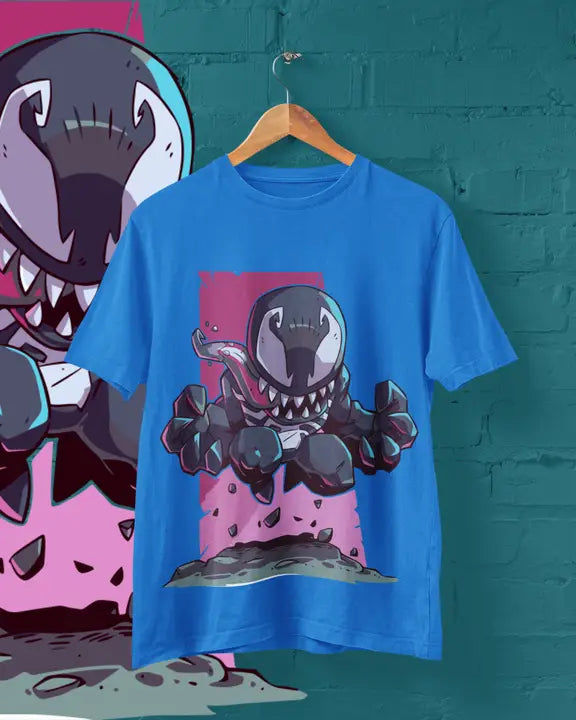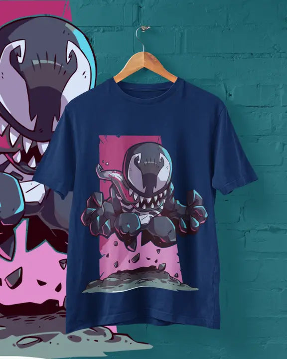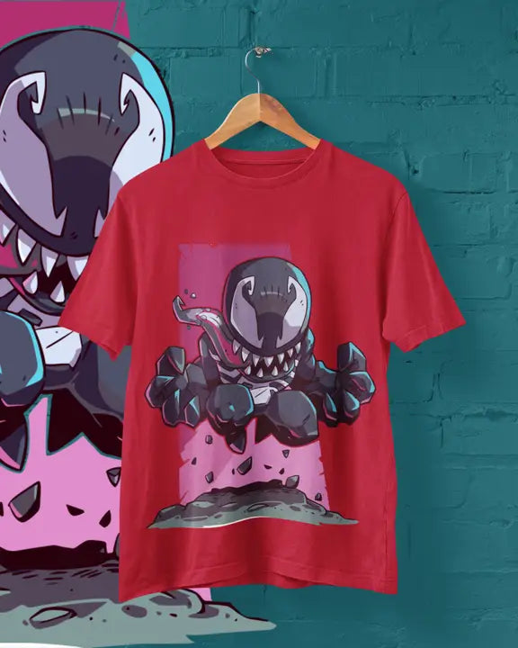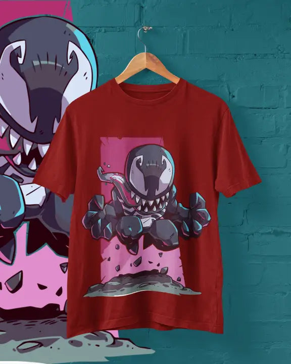 Unleash your inner symbiote with this ultra-comfy bio-wash cotton T-shirt, featuring a bold, playful cartoon illustration of Venom — Marvel’s most iconic anti-hero. With his oversized grin, wild tongue, and chaotic energy, this tee is perfect for fans who love their style with a side of dark humor.