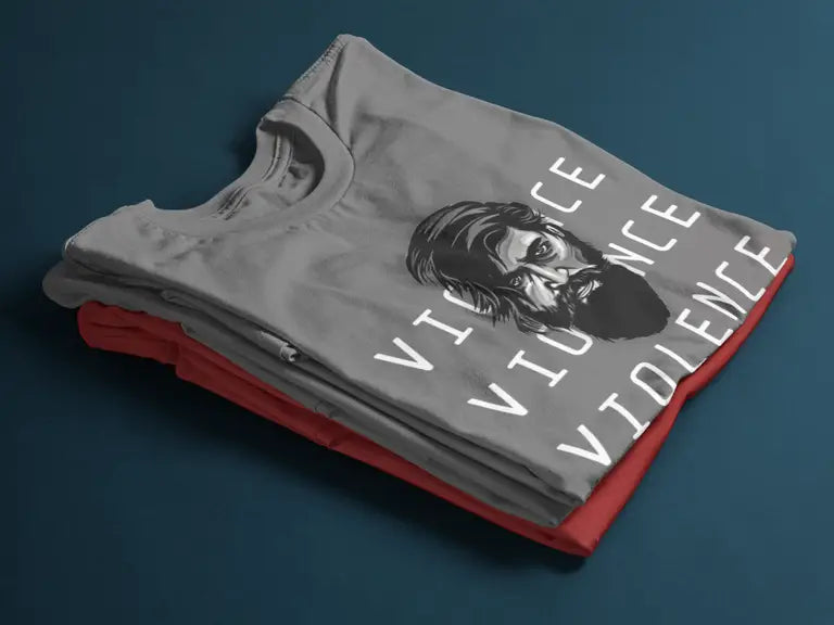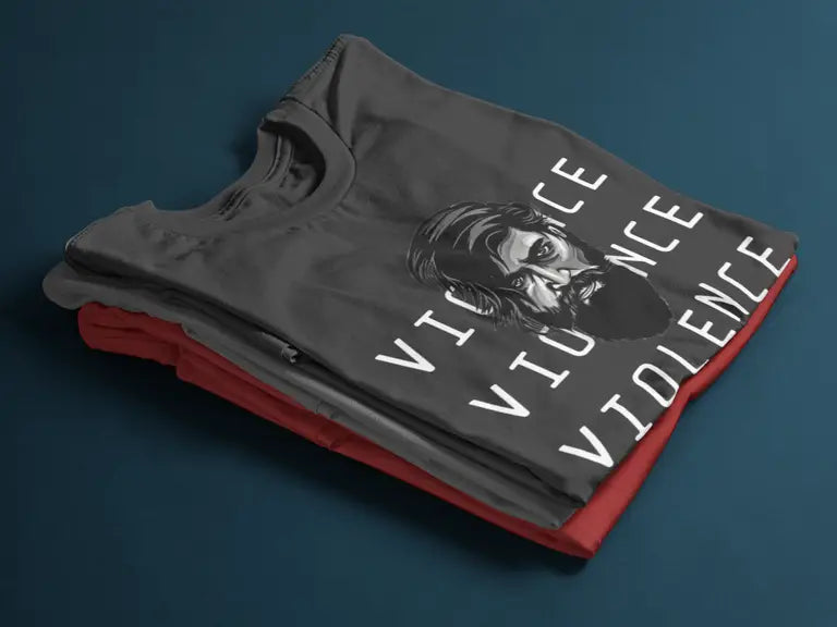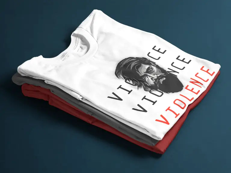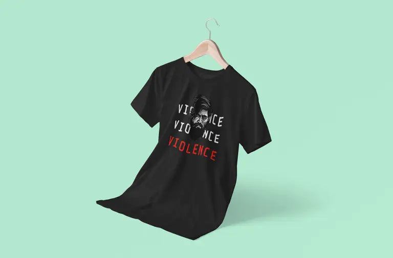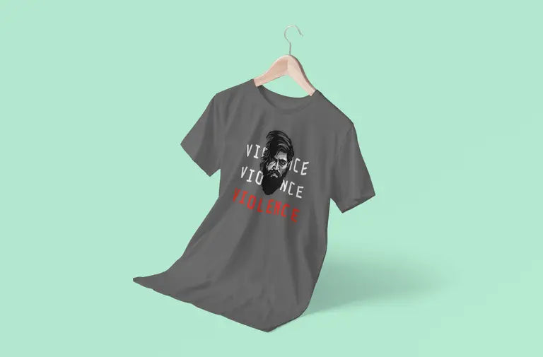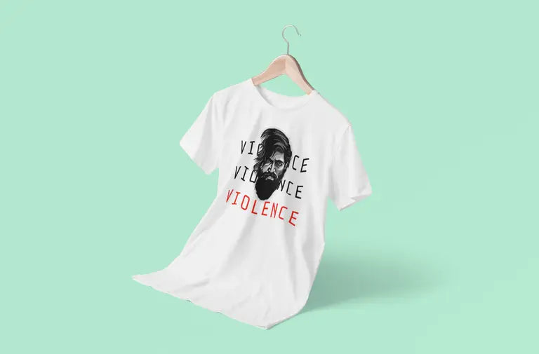 This electrifying T-shirt is inspired by the legendary character Yash portrayed in the Kannada film phenomenon KGF. Featuring the fierce quote “Violence. Violence. Violence.”, this tee is designed for fans who live and breathe mass cinema, attitude, and power.